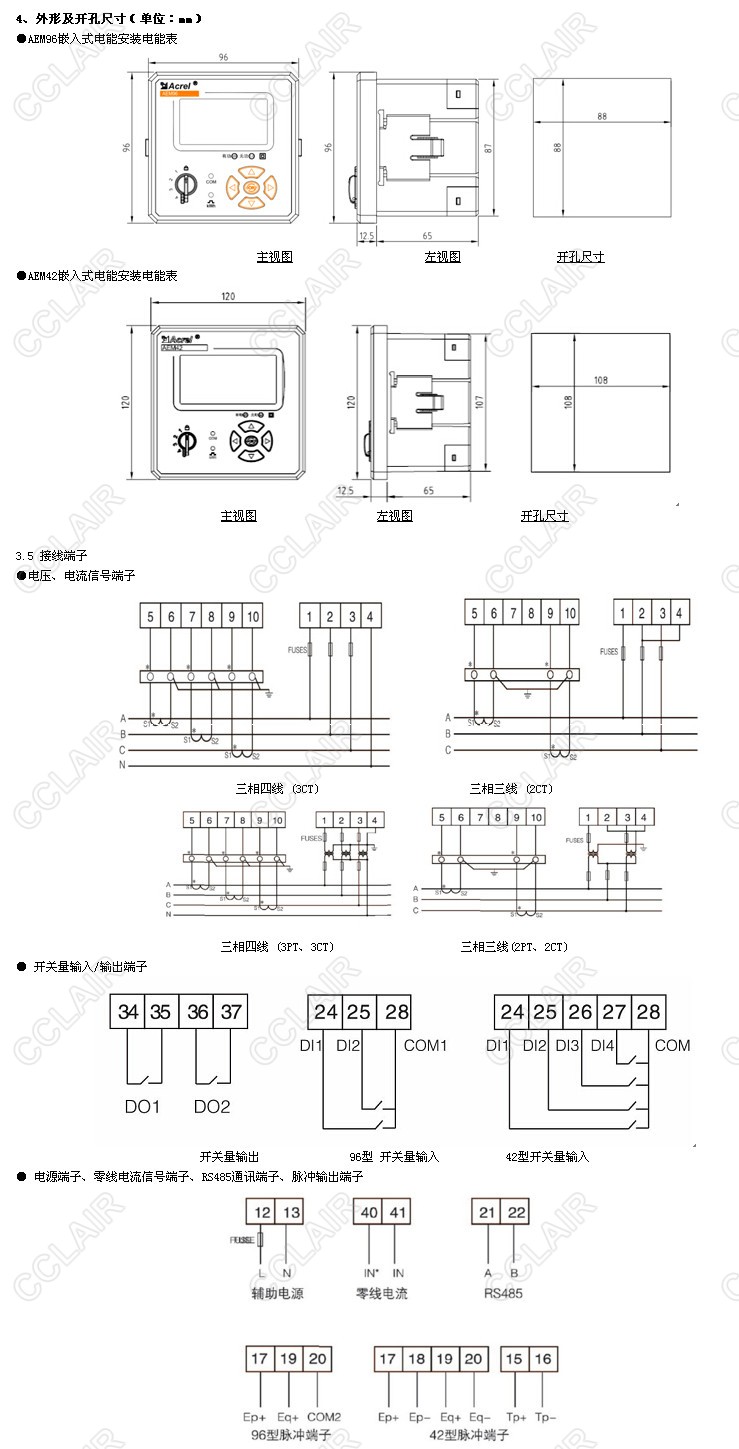 嵌入式安裝電能計(jì)量裝置是針對(duì)電力系統(tǒng)、工礦企業(yè)、公用設(shè)施的電能統(tǒng)計(jì)、管理需求而設(shè)計(jì)的一款智能儀表,集成了全部電力參數(shù)測(cè)量及全面的電能計(jì)量及考核管理,提供上24時(shí)、上31日以及上12月的各類電能數(shù)據(jù)統(tǒng)計(jì)。帶有開(kāi)關(guān)量輸入和繼電器輸出可實(shí)現(xiàn)“遙信”和“遙控”功能,并具備報(bào)警輸出。帶有RS485通信接口,采用MODBUS-RTU協(xié)議,可廣泛應(yīng)用于各種控制系統(tǒng),SCADA系統(tǒng)和能源管理系統(tǒng)中。