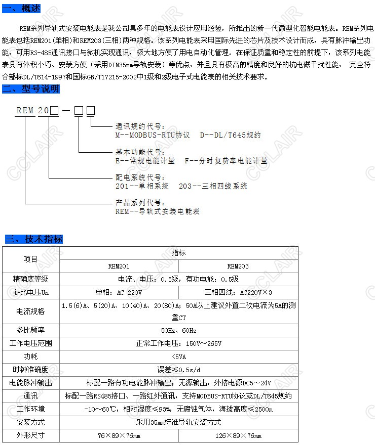 REM201,REM203,REM導(dǎo)軌式安裝電能表