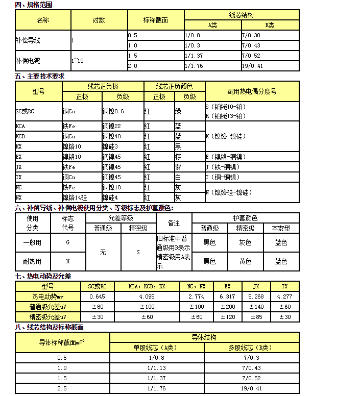 5、需阻燃型補償電纜,應(yīng)在原型號前加“ZR-”。