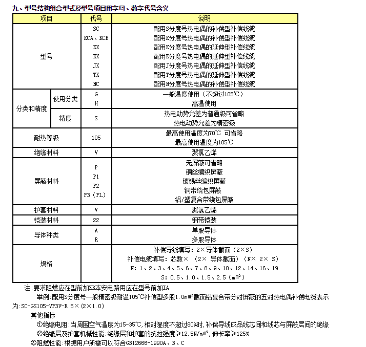 注:1、其它型號補償導(dǎo)線如:KC、JX、SC、EX、NC、TX等,只需改寫型號的第一項,如:EX-G-VV、TX-H-FVP等;