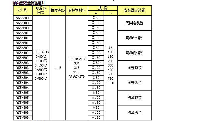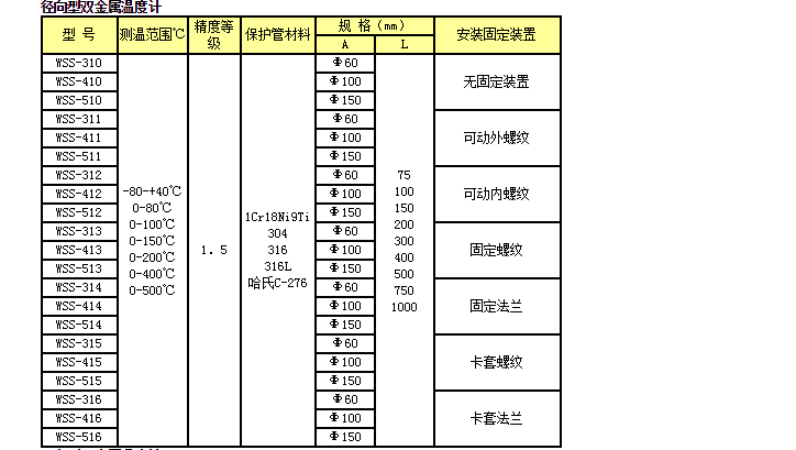 WSS-510,WSS-300,WSS-482,雙金屬溫度計(jì) |