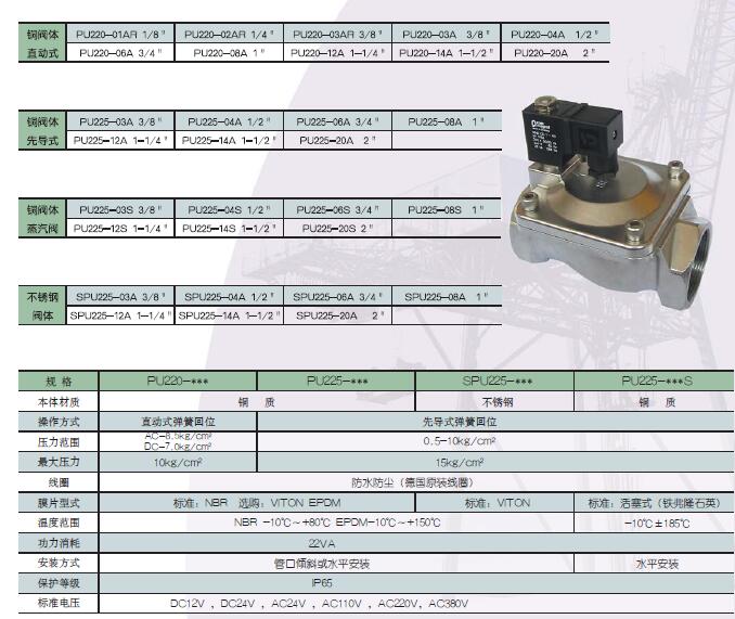 詳細(xì)信息 PU220-01AR,PU220-06A,PU225-03A,SPU225-12A,PU225-03S,PU225-08S,電磁水閥.