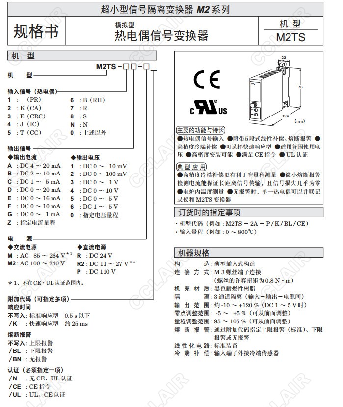 詳細信息 M2TS,M2TS-2A-P/K/BL/CE,M2TS-1,M2TS-2,M2TS-3,M2TS-4,熱電偶信號變換器(模擬型)