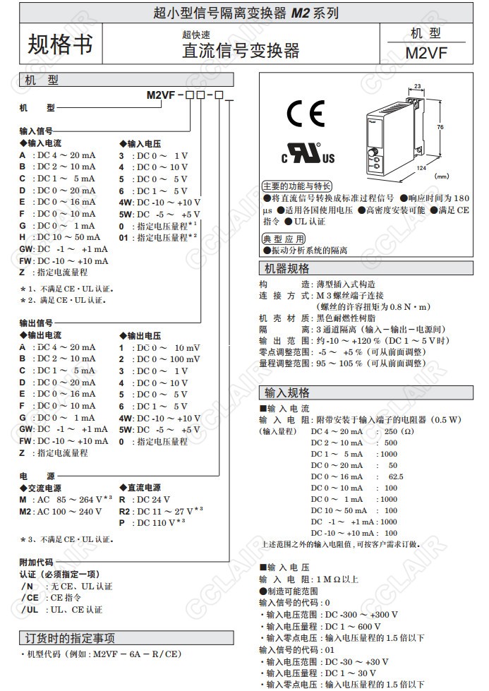 M2VF,M2VF-6A-R/CE,M2VF-A,M2VF-A1,M2VF-B,M2VF-C,M2VF-D,直流信號(hào)變換器(超快速)