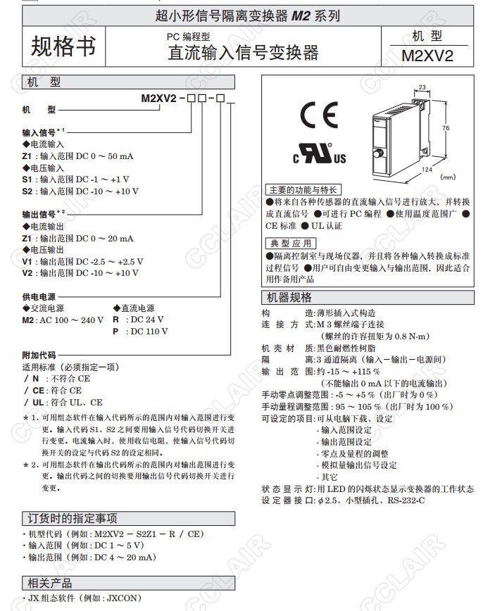 M2XV2,M2XV2-Z1 Z1-M2 /N,M2XV2-S1 Z1-M2 /N,M2XV2-S2 Z1-M2 /N,直流輸入信號變換器(PC編程型)