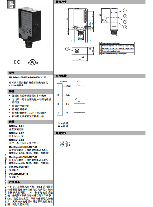 詳細(xì)信息 ML8-8-H-100-RT/65a/102/143/162,漫反射型傳感器