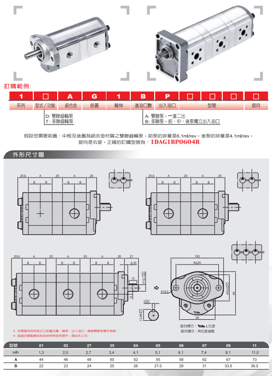 1DAG1AP,1DAG1BP,1TAG1AP,1TAG1BP,1DAG1BP0604R,HONOR鋁合金多聊齒輪泵