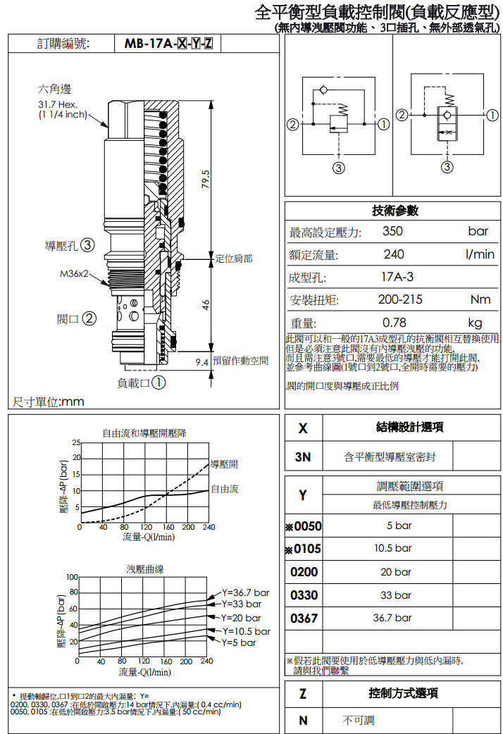 MB-17A-3N-0050-N,MB-17A-3N-0105-N,MB-17A-3N-0140-N,MB-17A-3N-0200-N,winner全平衡型負(fù)載控制閥