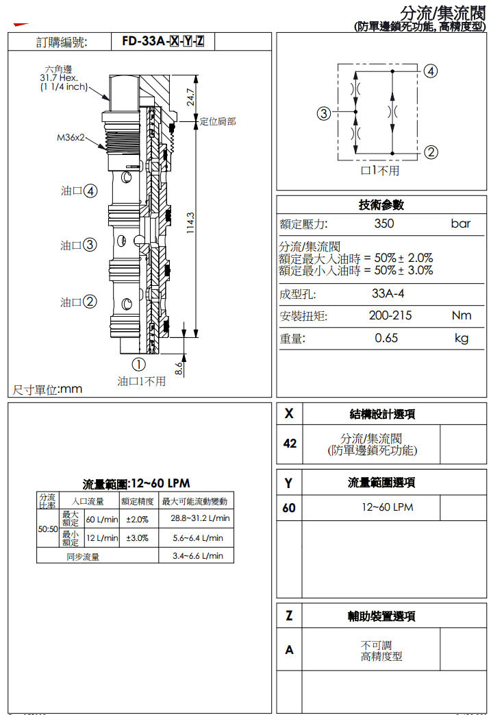 詳細(xì)信息 FD-33A-42-60-A,winner分流/集流閥