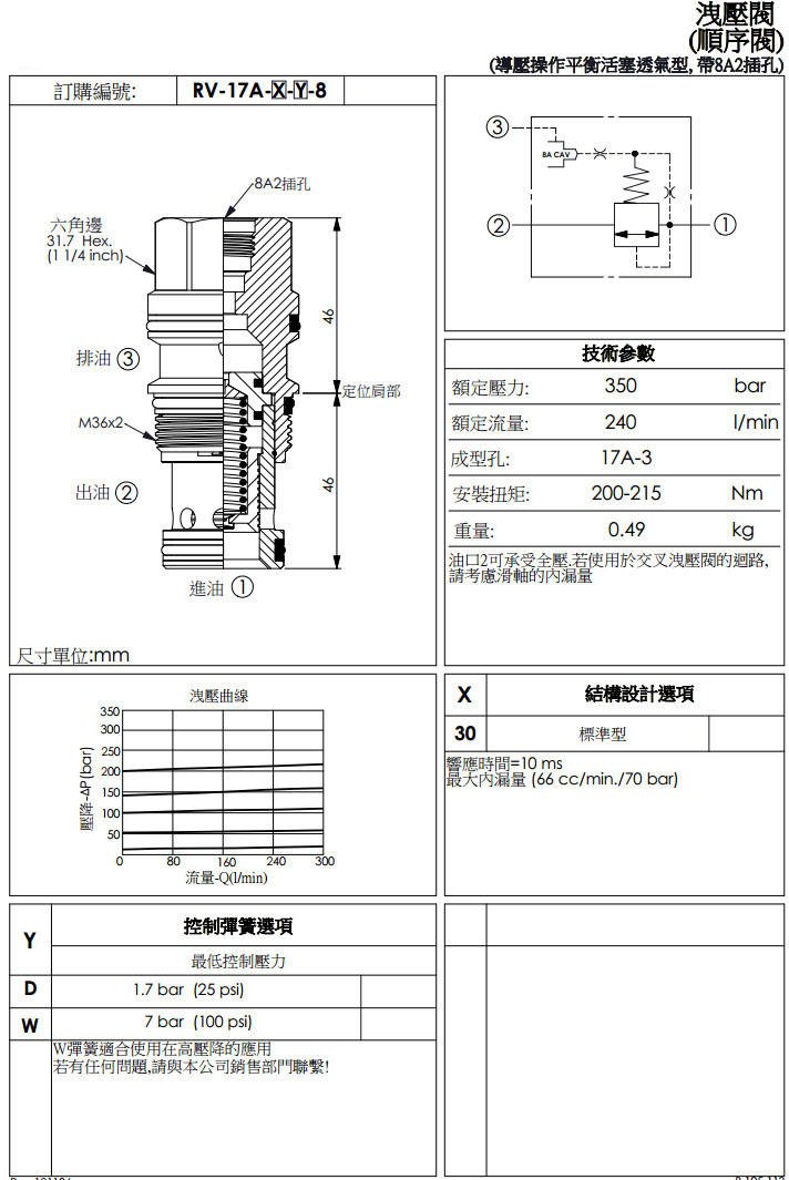 詳細(xì)信息 RV-17A-30-D,RV-17A-30-W,winner順序閥