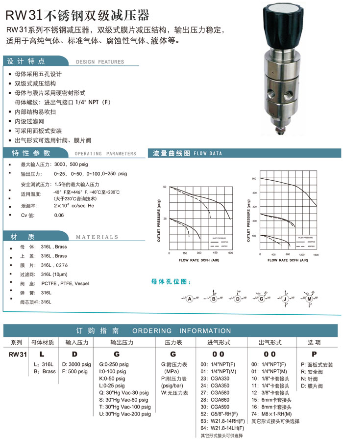 RW31LDGG,RW31LFGG,RW31BDGG,RW31BFGG,RW31LDGP,RW31LFGP,RW31BDGP,RW31BFGP,不銹鋼雙級(jí)減壓器