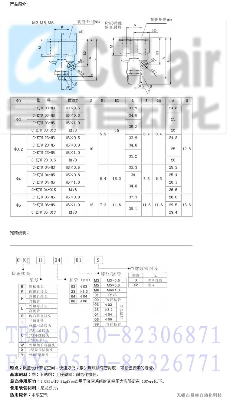 C-KJU06-M5,C-KJU06-M6, C-KUY06-01S, U型外螺接頭