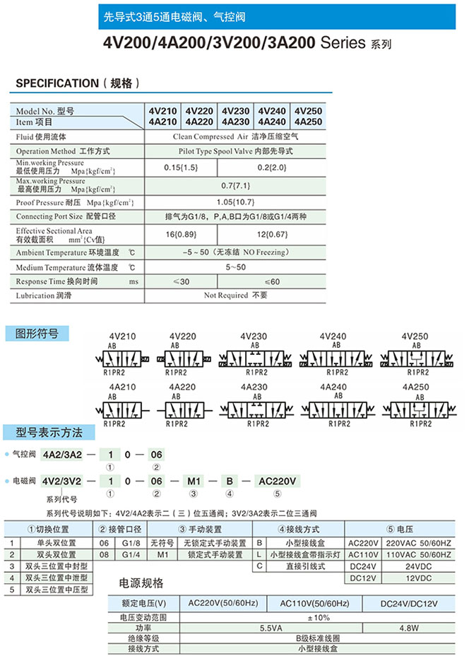 3V240-06,3V250-06,3V210-08,3V220-08,3V230-08,3V240-08,3V250-08,3V230-08-B,先導(dǎo)式3通5通電磁閥