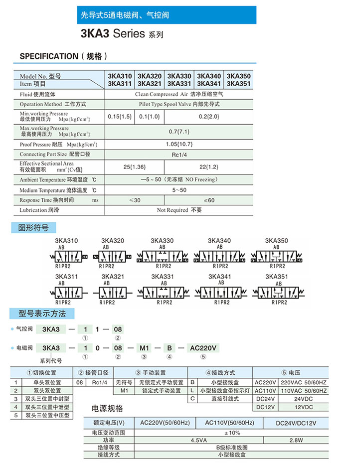 詳細(xì)信息 3KA311-08,3KA321-08,3KA331-08,3KA341-08,3KA351-08,先導(dǎo)式五通氣控閥