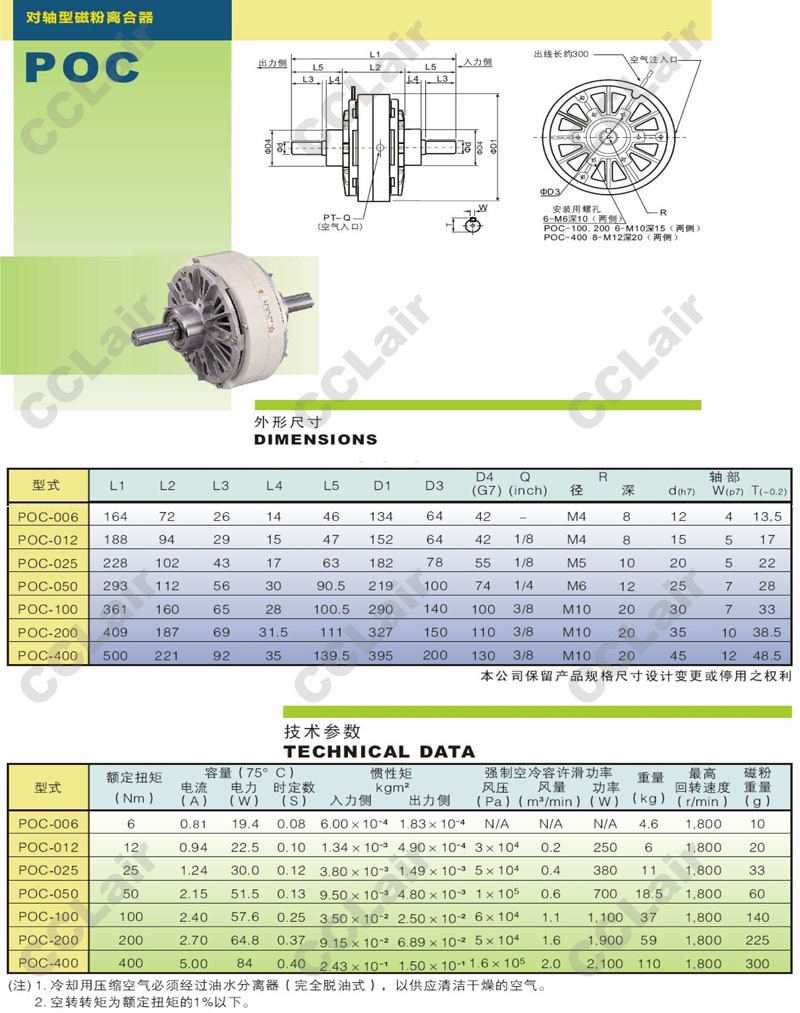 POC-006,POC-012,POC-025,POC-050,POC-100,POC-200,POC-400,對軸型磁粉制動器