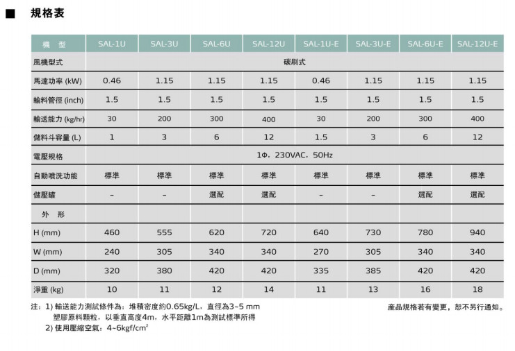 詳細(xì)信息 SAL-1U,SAL-3U,SAL-6U,SAL-12U,SAL-1U-E,SAL-3U-E,SAL-6U-E,SAL-12U-E,歐化直結(jié)式真空填料機(jī)