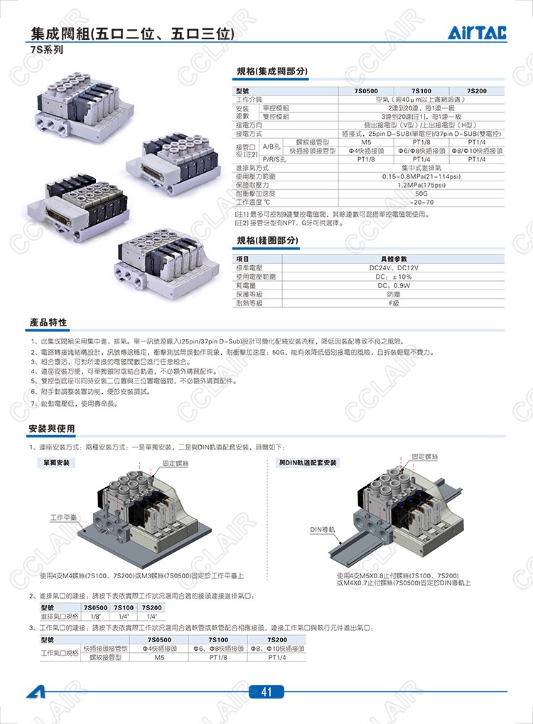 詳細信息 7S0500,7S100,7S200,AIRTAC集成閥組