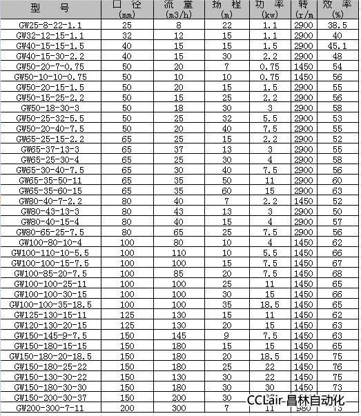 GW80-65-25-7.5,GW100-80-10-4,GW100-110-10-5.5,GW100-100-15-7.5,