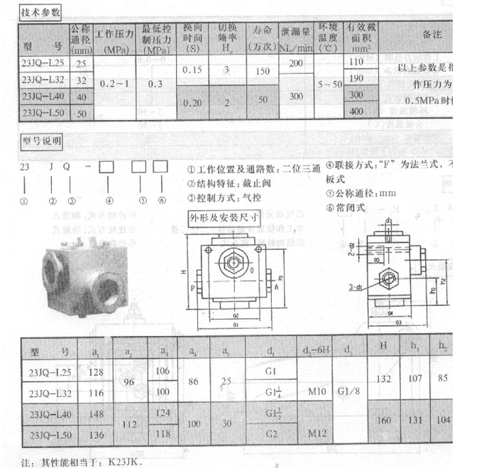 二位三通單氣控截止閥23JQ-L25,23JQ-L32,23JQ-L40,23JQ-L50