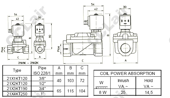 21X1KT120,21X2KT120,21X3KT190,21X4KT250,意大利ODE先導膜片式不銹鋼電磁閥