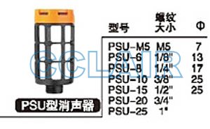 詳細信息 PSU-M5,PSU-6,PSU-8,PSU-10,PSU-15,PSU-20,PSU-25,塑料消聲器