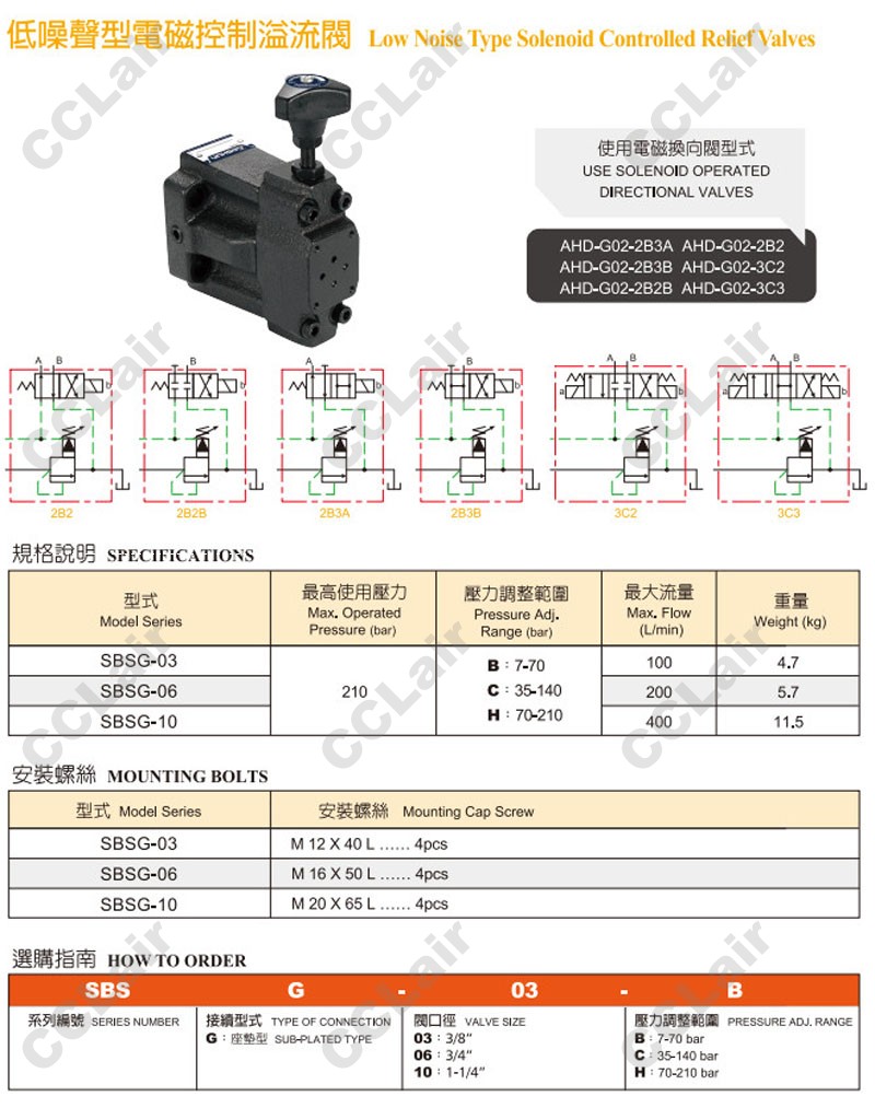 SBSG-03,SBSG-06,SBSG-10,SBSG-03-B,SBSG-06-H,SBSG-10-C,ASHUN油順低噪音電磁控制溢流閥