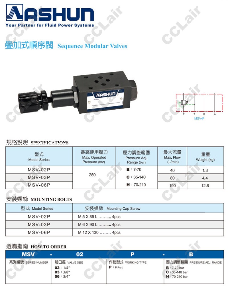 MSV-02P,MSV-03P,MSV-06P,MSV-02P-B,MSV-03P-C,MSV-06P-H,ASHUN油順疊加式順序閥
