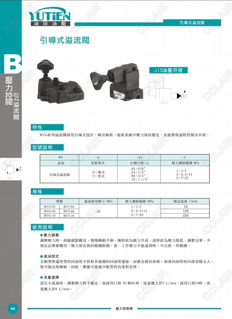 詳細(xì)信息 YUTIEN油田引導(dǎo)式溢流閥RVG-03-1,RVG-06-2,RVG-10-3,RVT-04-1,RVT-06-2,RVT-10-3