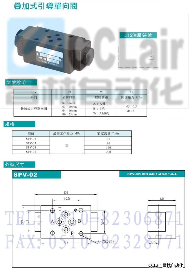 SPV-02A,SPV-02B,SPV-02W,SPV-03A,SPV-03B,SPV-03W,疊加式引導(dǎo)單向閥