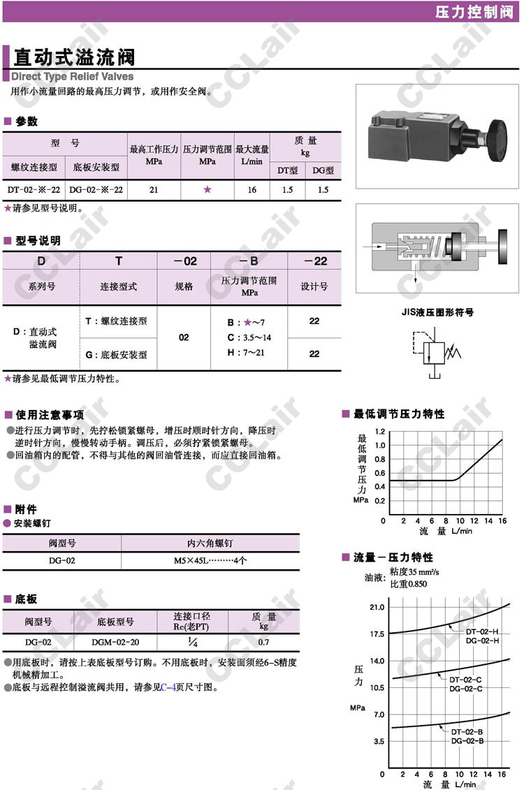 詳細信息 DT-02-B-22,DT-02-C-22,DT-02-H-22,直動式溢流閥,YUCIYUKEN榆次油研