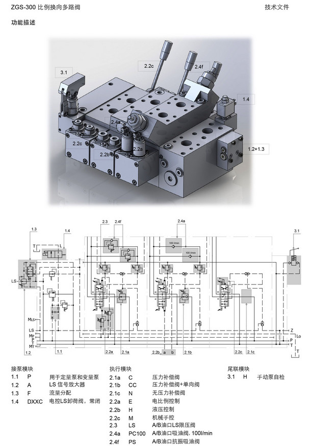 ZGS-300是帶壓力補償?shù)呢撦d敏感比例換向多路閥。它的流量控制同負載壓力無關(guān),也就是說,某個執(zhí)行模塊所需要的流量與該執(zhí)行模塊的負載壓力無關(guān),同時,這個執(zhí)行模塊所需要的流量同其它執(zhí)行模塊的負載壓力及流量也無關(guān)。這樣,當幾個動作,幾個執(zhí)行模塊同時工作的時候,各個動作可以按照各自的速度壓力進行工作,相互獨立,互不影響。以上情況的前提條件是:各個動作所需要的總流量小于泵可以提供的總流量。ZGS-300整體采用統(tǒng)的模塊化設(shè)計,用戶可以根據(jù)功能要求對閥體進行不同的組合,簡單可靠。
