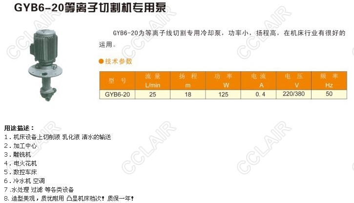 詳細(xì)信息 GYB6-20,等離子切割機(jī)專用冷卻泵