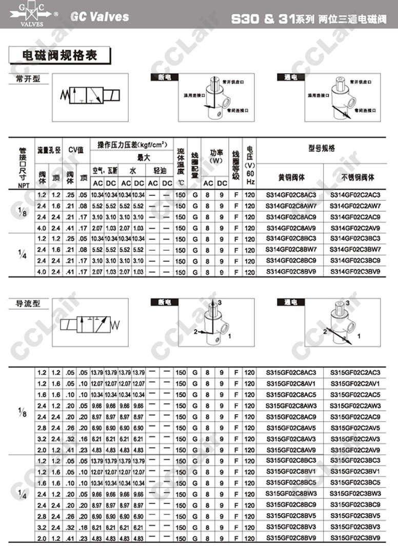 詳細(xì)信息 S303GF02,S304GF02,S305GF02,S306GF02,S307GF02,S313GF02,S314GF02,S315GF02,S316GF02,S317GF02,GC Valves二位三通直動(dòng)式電磁閥