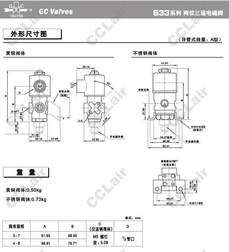 S333GF02C,S334GF02C,S336GF02C,S336GF02C3BD5,S336GF02C4BD8,S336GF02C4BC9,GC Valves二位三通直動式電磁閥