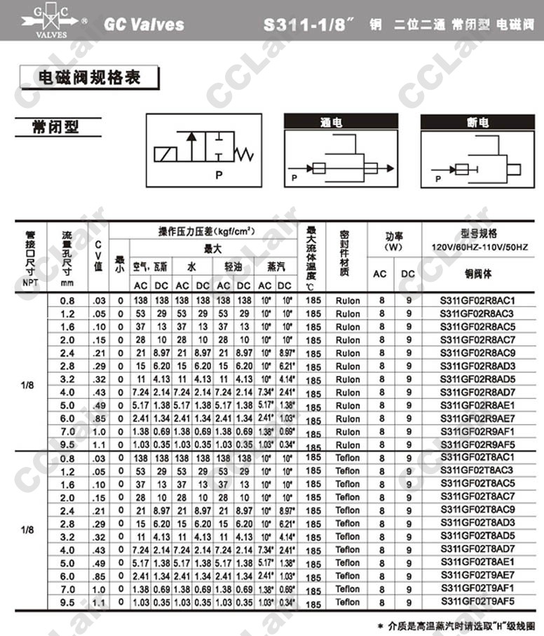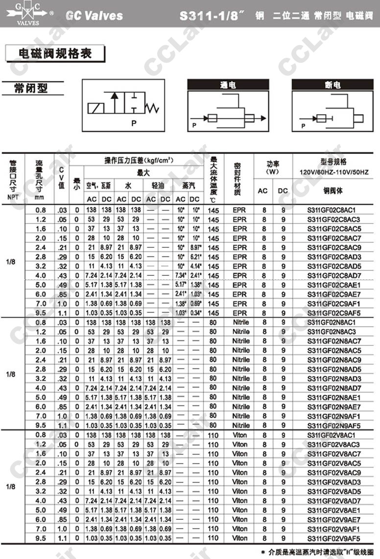 S311GF02N8AD3,GC Valves S311GF02N8AD5,S311GF02N8AD7,S311GF02N8AE1,S311GF02N8AE7,S311GF02N9AF1,
