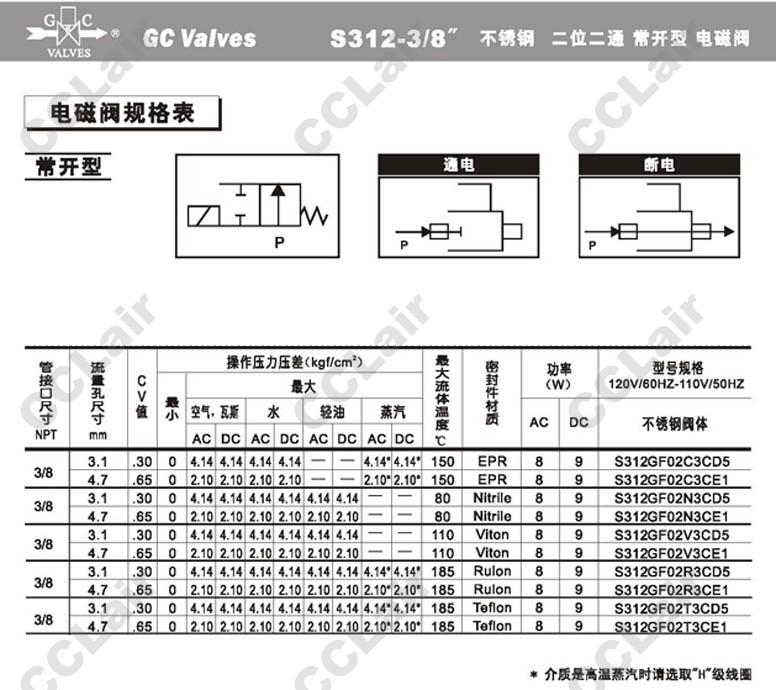 S311GF02C,S311GF02N,S311GF02V,S311GF02R,S311GF02T,S312GF02T8AE1,GC Valves二位二通小型直動(dòng)式電磁閥