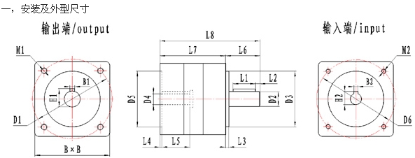 | D6 | 輸入端安裝孔分布圓直徑 | 132 |