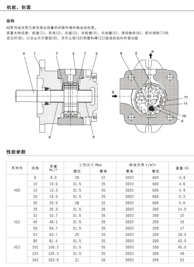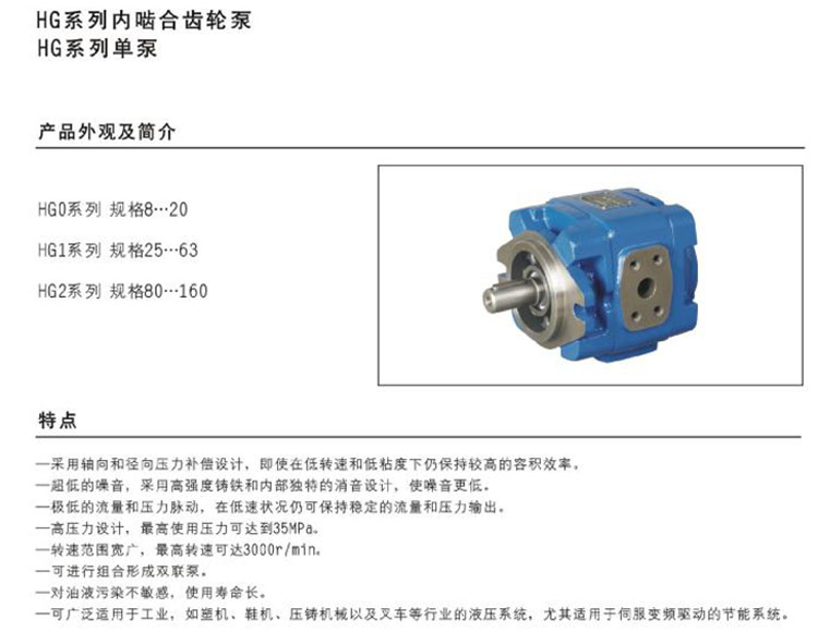 HG0-08,HG0-10,HG0-13,HG0-16,HG0-20,HG1-25,HG1-50,HG1-63,HG2-80,HG2-100,HG2-125,HG2-160,內嚙合齒輪泵