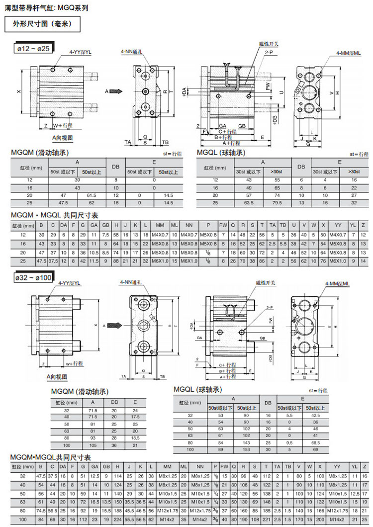 MGQL12,MGQL16,MGQL20,MGQL25,MGQL32,MGQL40,MGQL50,MGQL63,MGQL80,MGQL100,MGQL12-10,SMC薄型帶導(dǎo)桿氣缸
