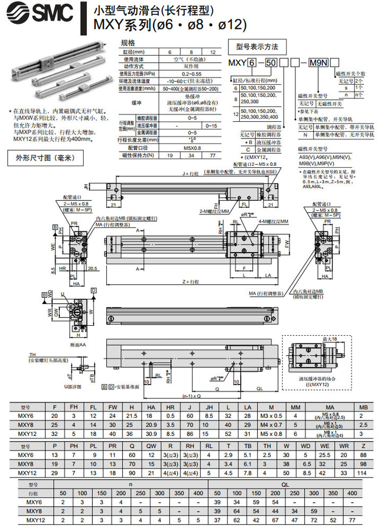 MXY6-50,MXY8-50,MXY12-50,MXY6-100,MXY8-100,MXY12-100,MXY6-150,SMC小型氣動(dòng)滑臺氣缸