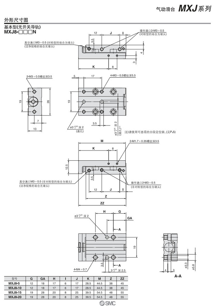 MXJ4-5,MXJ4-10,MXJ6-5,MXJ6-10,MXJ6-15,MXJ8-5,MXJ8-10,MXJ8-15,MXJ8-20,SMC氣動滑臺氣缸
