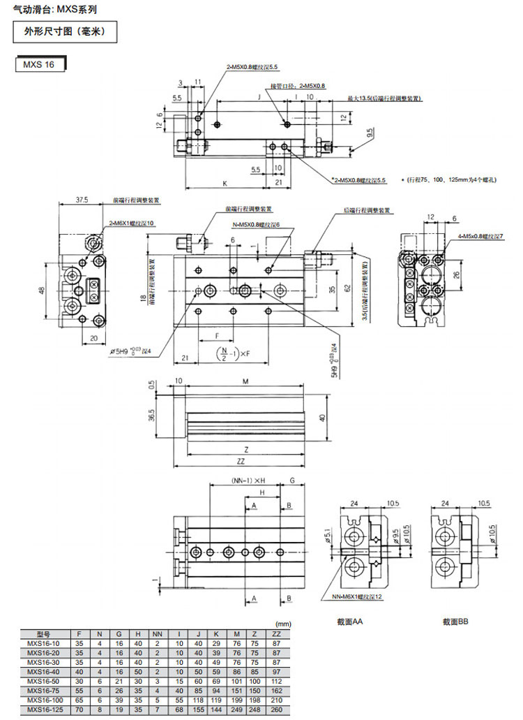 MXS6-10,MXS8-10,MXS12-10,MXS16-10,MXS20-10,MXS25-10,MXS6-20,MXS8-20,MXS12-20,SMC氣動滑臺氣缸