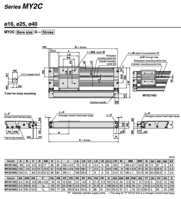 MY2C16G-100,MY2C25G-100,MY2C40G-100,MY2C16G-200,MY2C25G-200,MY2C40G-200,SMC無(wú)桿氣缸