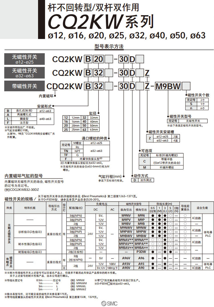 CDQ2KWD63-45D,CDQ2KWD63-50D,CDQ2KWD63-75D,CDQ2KWD63-100D,CDQ2KWD63-40D,SMC桿不回轉(zhuǎn)型氣缸