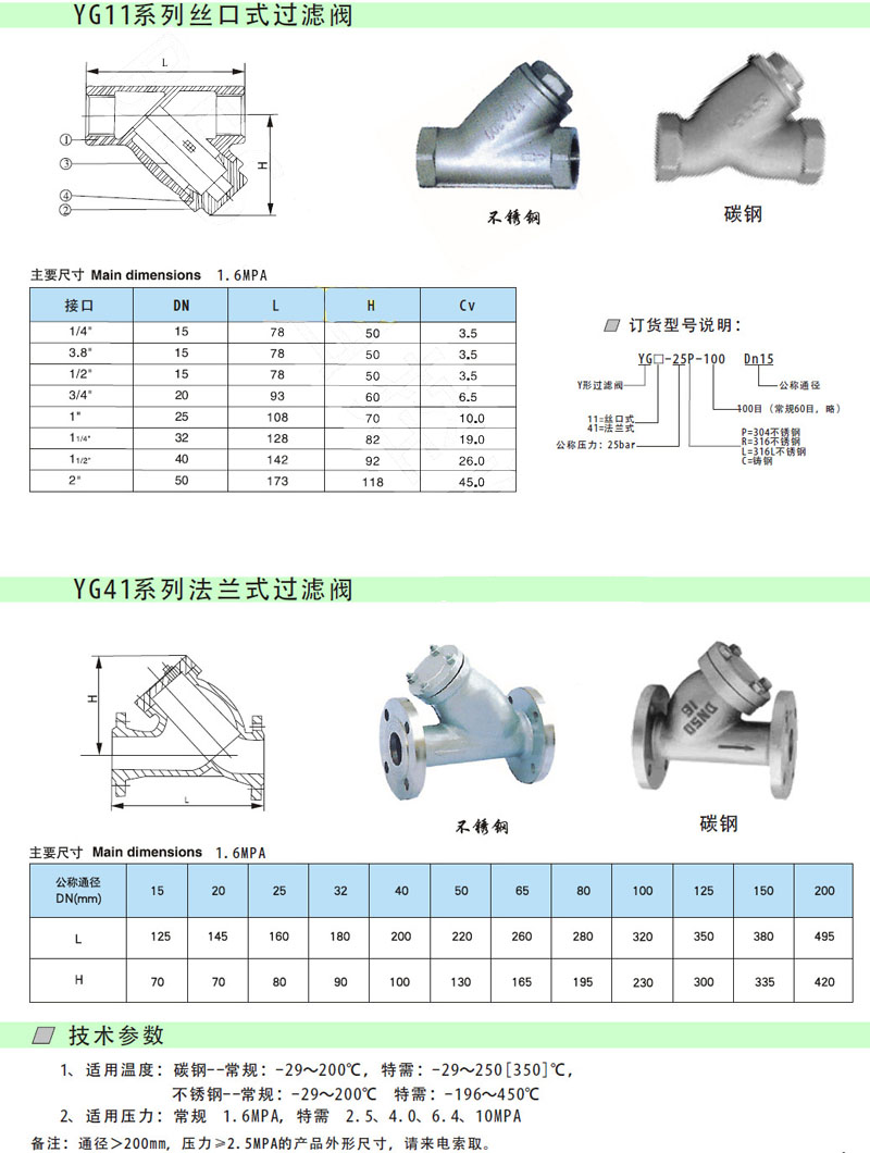 YG11-16P,YG11-25P,YG11-40P,YG14-16P,YG14-25P,YG14-40P,法蘭式過濾閥
