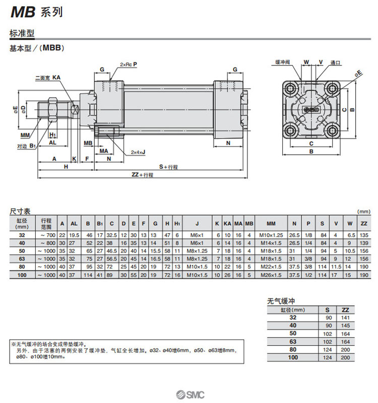 MDBT80-600Z,MDBT80-700Z,MDBT80-800Z,MDBT100-25Z,MDBT100-50Z,MDBT100-75Z,MDBT100-100Z,MDBT100-125Z,SMC單桿型氣缸