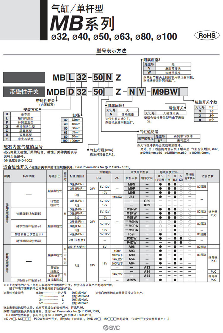 MBT100-150Z,MBT100-175Z,MBT100-200Z,MBT100-250Z,MBT100-300Z,MBT100-350Z,MBT100-400Z,MBT100-450Z,SMC單桿型氣缸