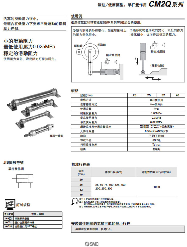 CDM2QB40-300,CDM2QL40-300,CDM2QF40-300,CDM2QG40-300,CDM2QC40-300,CDM2QD40-300,CDM2QU40-300,CDM2QT40-300,CDM2QE40-300,SMC低摩擦型氣缸