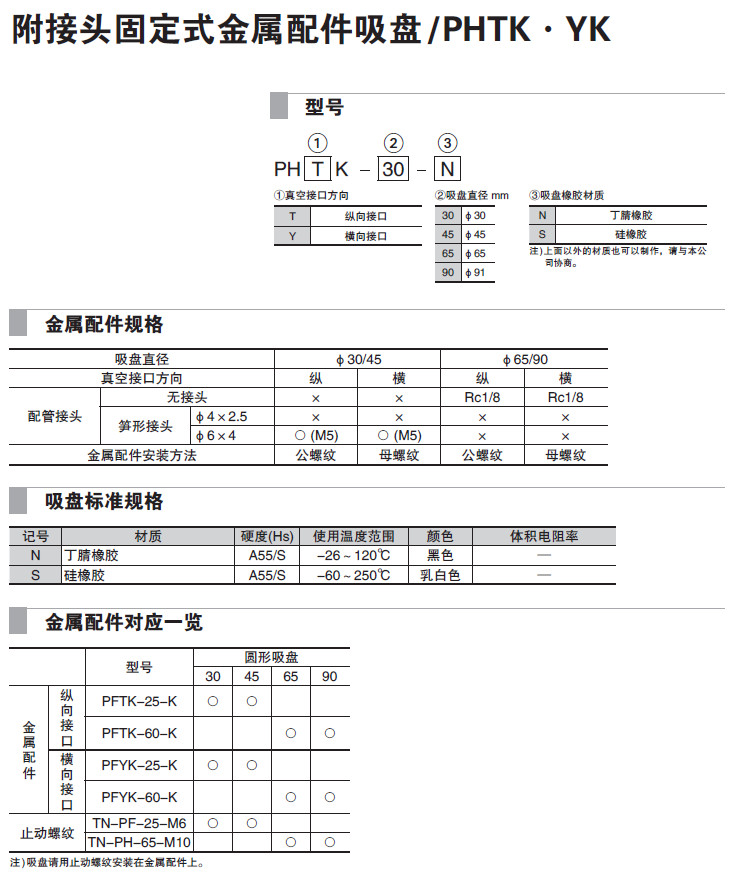 PHTK-30,PHTK-45,PHTK-65,PHTK-90,PHYK-30,PHYK-45,PHYK-65,PHYK-90,吸盤