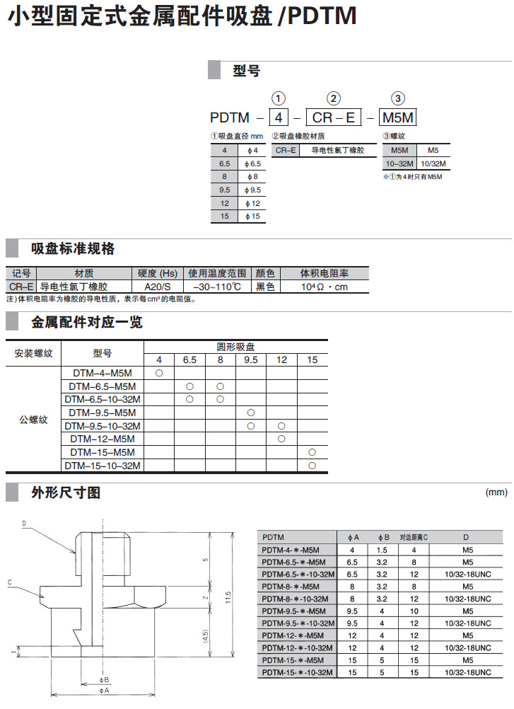 PDTM-4,PDTM-6.5,PDTM-8,PDTM-9.5,PDTM-12,PDTM-15,吸盤